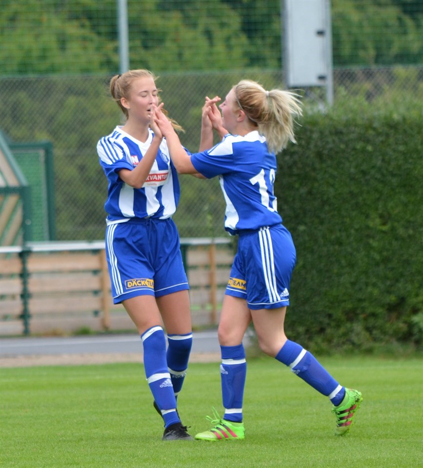 Uddamålsförlust i derbyt! I höstsäsongens fjärde match kom så äntligen höstens första mål! Efterlängtat så klart, men framförallt så, så välförtjänt efter att som lag ha tagit rejäla kliv i så många spelmässiga delar under de senaste månaderna. Med en dåres envishet kanske somliga kan tycka, men faktum är att dessa spelare hela tiden visar prov på hur laget utvecklas även om nu resultaten inte ger den tydligaste indikationen. Lördagens match (mot fjolårets samarbetspartner!) var ganska chansfattig, åt båda hållen. Detta visade sig bl a genom att Gärsnäs båda mål tillkommer direkt efter två fasta situationer. Det första i matchens 10:e min efter en central frispark och lite "tumult" i målområdet där bollen till slut letar sig över mållinjen. Majoriteten av Gärsnäs mer framgångsrika försök att skapa målchanser sker genom anfall i yttre korridorerna vilka vi i första läget lyckas avstyra, men tyvärr blir utfallet en hel del defensiva hörnor och det är också dessa som är gästernas främsta anfallsvapen i denna match. Det andra målet i den 23:e minuten sker därför ganska symptomatiskt efter just en defensiv hörna som i sin andra sekvens (ofrivilligt) touchar en spelare inne i målområdet och styrs in i mål. Men här visar spelarna att vilja och ambitionsnivå att hela tiden jobba efter de konstruktiva och långsiktiga spelidéer som introducerats under hela säsongen är något man är hängivna! Att i anfallsspelet spela sig fram i plan och söka ytor och spelvägar där hela laget är delaktigt, vilket äntligen får utdelning i ett snabbt anfall som sätter Lotta Norrman i ett friläge som hon utför med härlig kyla och sätter reduceringen 1-2. Matchens andra halvlek inleds lite darrigt framförallt försvarsmässigt och vi hamnar återigen (ofrivilligt) lite för långt ner i plan och lämnar över lite för mycket bollinnehav till Gärsnäs. Detta korrigerar dock spelarna riktigt bra ganska snart för att återigen få till lite mer och längre sekvenser av bollinnehav. Så klart trist att inte få till en kvittering trots idogt arbete från samtliga spelare, men det här laget har tagit många andra typer av "segrar" under denna säsong och alla vi som följt lagets utveckling vet att det är de viktiga, stora byggstenarna som noggrant måste läggas först när man bygger något från grunden! Stort tack till alla Ni som förgyller inramningen ute på IP dessa matcher! Ni på läktaren, och alla ni som hjälper till med allehanda insatser i samband med matcherna, Ni bidrar till en härlig stämning.....stort TACK! Vi ses på fredag 13/9 19.00, då är det dags för nästa hemmamatch mot serieledarna Lunds BK! Det blir en härlig fotbollsmatch, missa inte chansen......den nästsista hemmamatchen för året!