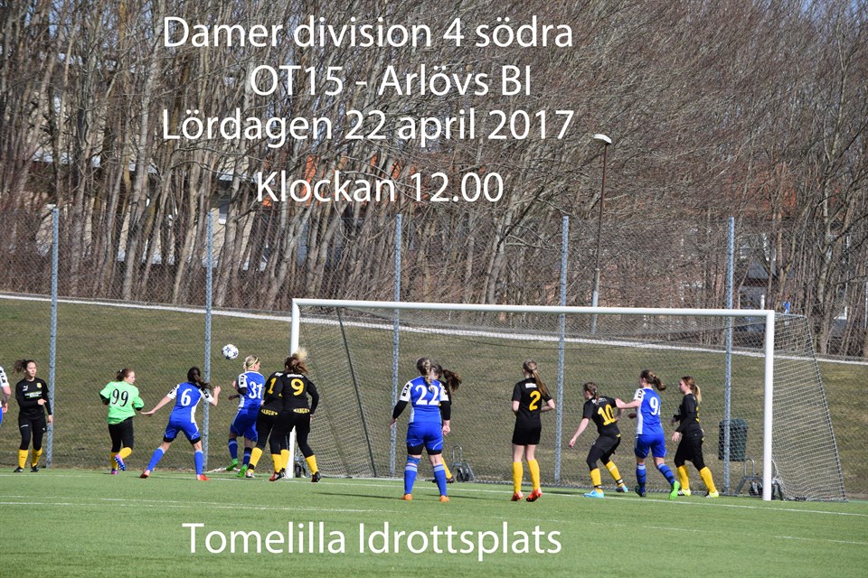 OT15 – Arlövs BI, 1 - 3 (0 - 1) 2017-04-22 I årets första seriematch på hemmaplan möter vi Arlövs BI på Tomelilla idrottsplats. Gästerna är nykomlingar i vår serie och därför vet vi inte så mycket om laget. Vår inställning är att vi inte ska formera vårt lag efter motståndarna utan se till att spela det spel vi är bra på. Också den är dagen är vädret sådant att det påverkar spelet. Visserligen är det uppehåll och lite soligt men det blåser rätt kraftigt i planens längdriktning. Då blir det lätt så att lagen för matchen under var sin halvlek. Vi får börja i medvind. Idag ställer vi upp med följande lag. Therése Lökken, Amanda Rohlin, Frida Sterner, Rebecca Börsum, Matilda Persson, Annie Nilsson, Emilia Marceau, Linnéa Persson, Ida Andersson, Nora Lynghed, My Möller Persson, Johanna Möller, Katja Henriksson, Erika Gradin och Julia Persson. Bland annat i kraft av att vi spelar i medvind är det vi som tar tag i spelet och för matchen i inledningen. Trots vårt spelmässiga övertag får vi ingen utdelning i form av mål. Vi skapar en hel del chanser men har inte marginalerna på vår sida. I stället är det Arlöv som efter 20 minuter i ett ströanfall tar ledningen med 1 – 0. Målet blir inledningen till att våra gäster får lite mer att säga till om men inte heller deras chanser omsätts i mål. I halvtid är ställningen fortsatt att Arlöv leder med 1-0. Det känns ändå som att vi har gjort en okej första halvlek. I andra halvlek får våra motståndare en pangstart med mål i den 4 respektive 6 minuten och plötsligt har man ledningen med 3 – 0. De fortsätter att trumma på och det känns nu rätt olustigt att vara hemmalag. Efter några förändringar i laget får OT15 igång det spel som vi egentligen ska spela och ser nu till att matchen förs på Arlövs planhalva. Vi radar också upp massor av chanser. Bland annat har vi många hörnor och flera riktigt bra skott strax utanför målstolparna men saknar fortfarande det där riktiga flytet. Inte förrän det återstår fem minuter av ordinarie speltid får vi vår välförtjänta reducering genom Linnéa Persson. Det återstår tyvärr alltför kort tid för att det ska bli riktig nerv i matchen. Den slutar med förlust 1 – 3. Resultatet idag är inte riktigt det vi hade hoppats på. Vi har nu en poäng på de två inledande matcherna. Även om det återstår 14 matcher vill det nog till en förändring om vi skall tillhöra de bästa lagen i serien. Matchens sista halvtimme visar att vi är på rätt väg och vi ser framtiden an med tillförsikt. I nästa omgång möter vi Rydsgårds AIF/Skivarps GIF. Också den här gången har vi fördel av hemmaplan. Matchen spelas den 29 april klockan 11.00 på Onslunda idrottsplats. Hoppas vi ses igen då. //Stig Throbäck