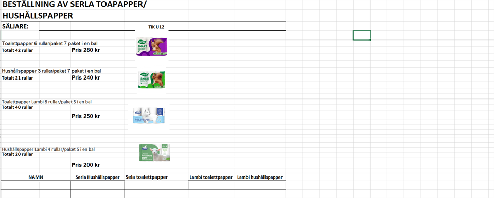 Nu kör vi igång med försäljning av toa/hushållspapper.