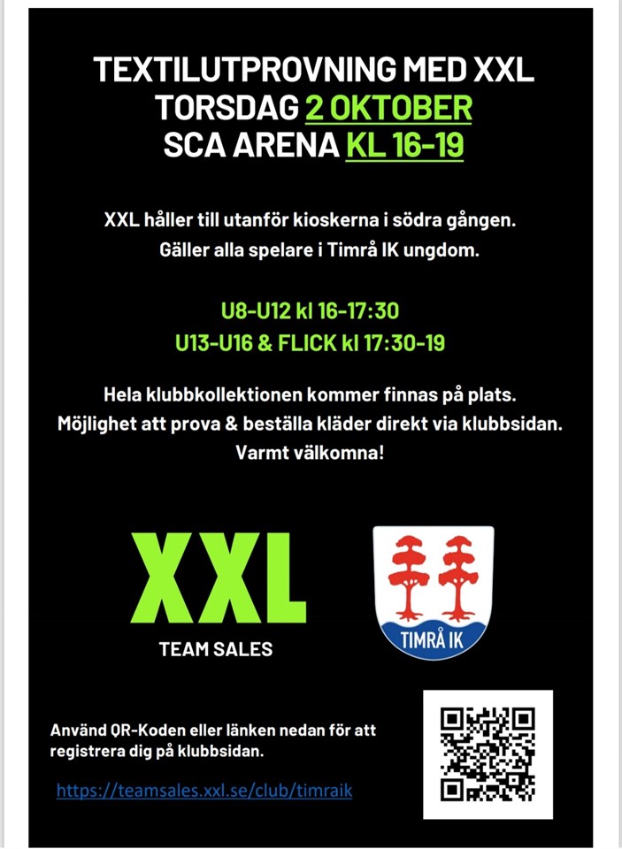 Man skapar ett konto för Teamsales på XXL via länken. Inget måste att ha våra kläder. Man bestämmer själv. Tiderna är ungefärliga. Öppet för alla när de finns på plats. Brukar ju vara möjligt att se över kollektionen på XXL under säsongen för utprovning. Sen går man in på kontot och beställer med initialer på plaggen.