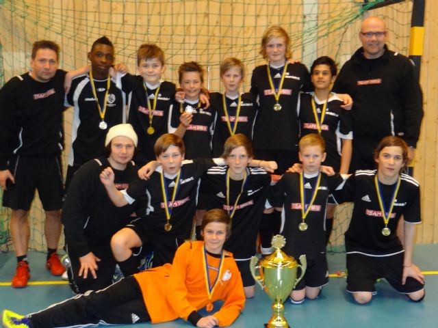 Härligt jobbat grabbar! Ni ägde denna säsongen. Brons i Laxå, Guld på Åland, Guld i Askersund, 1:a i Futsalserien och nu vann ni även slutspelet i Västmanlands Futsalserie. Det är ni värda efter allt slit. Slutspelet i Futsalserien 11/3 2012: Först besegrades Skultuna med 2-1 i kvartsfinalen, i semifinal besegrade vi Gideonsberg med 4-0, i Finalen mötte vi Franke som även de besegrades med 3-0. Grattis grabbar!!!!