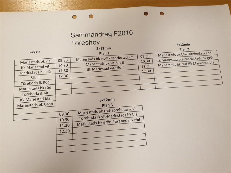 Ny samlingstid imorgon lördag 31/8: kl 08.30 på Töreshov. Vi har två lag anmälda som kommer att spela två matcher var. Speltiden är 3x12 min. Första matchen för båda lagen är kl.9.30. Bifogar matchschema. P15 30 aug 2019 0kommentarer