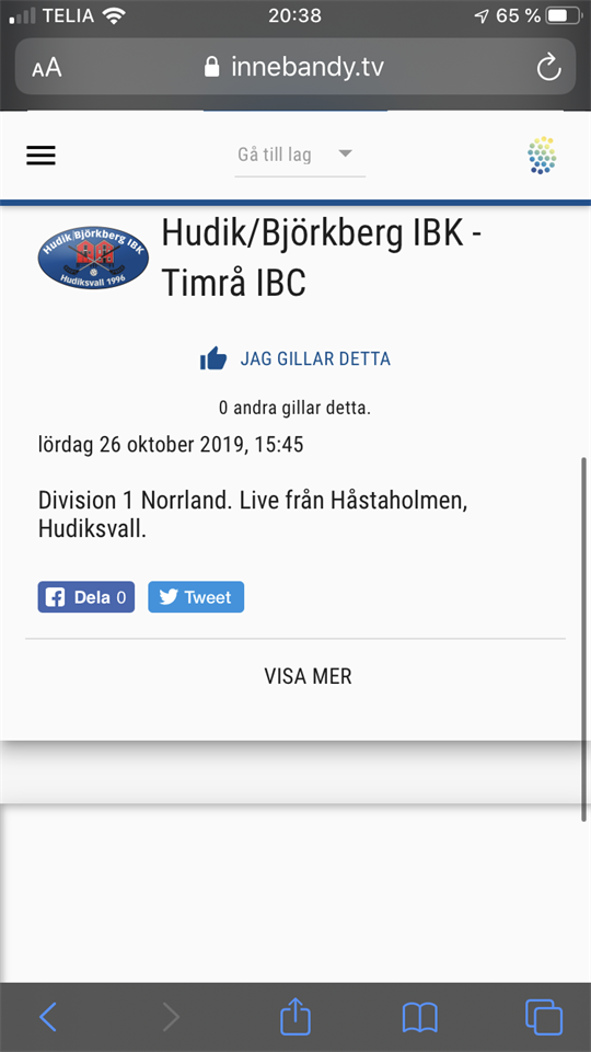• Tyvärr ytterligare en förlust för Timrå IBC!