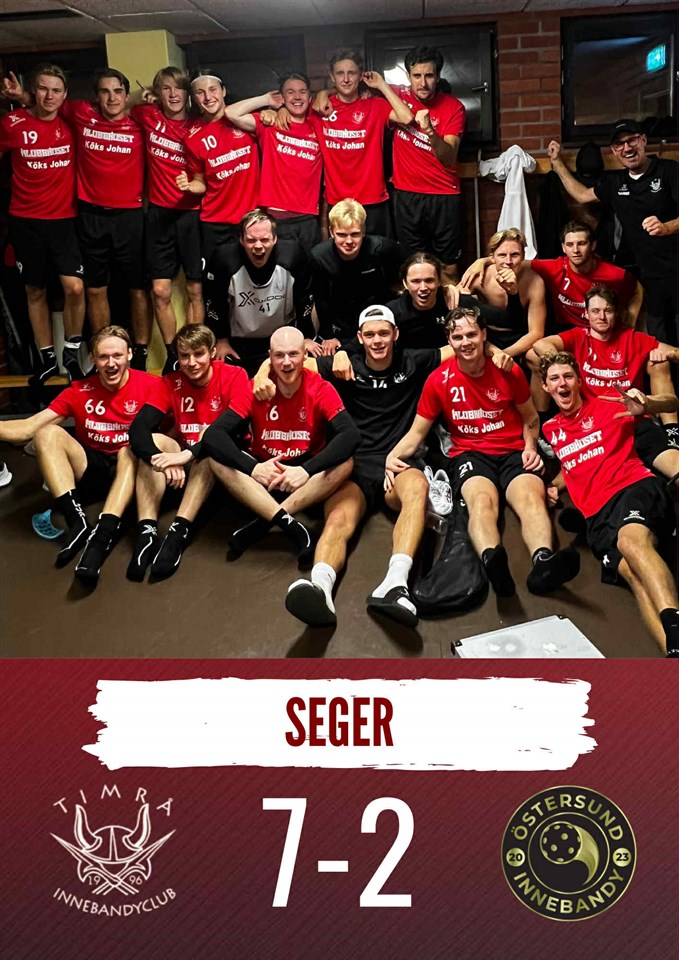 Seger 7-2 i premiären! Tuff start med mål i baken redan efter 5 sekunder. Vi kommer dock tillbaka när 17 årige Ludvig Olsson från backplats bombade in sitt första division 1 mål. Därefter gör vi 2 mål I PP genom Byrra vilket gör ställningen 3-1 i paus. Östersund reducerar i PP i början på andra perioden innan det är dags för Vidar Roslin Lindgren att presentera sig för sin nya hemmapublik när han snyggt bågar in 4-2 till Timrå 8 minuter in i perioden och därmed gör även han sitt första division 1 mål. 5-2 görs efter ett snyggt anfall där Joel Eliasson assisterar Gabbe som distinkt sätter dit den. Innan perioden är till ända gör Byrra sitt tredje och vårt 6:e mål och stabil 6-2 ledning inför den sista akten. Där spelar vi av matchen och Ante Jäder fastställer slutresultatet 7-2 på ett direktskott efter pass av matchens stora gigant Erik ”Byrra Byrinder som kliver av planen med 3 mål och 2 assist. Kan tillägga att Gio räddade en straff i slutet och i övrigt som vanligt ett stabilt målvaktsspel. Skönt med vinst i premiären för vårt härliga lag. Härnäst väntar en resa till Norrbotten och match mot Luleå och Öjebyn kommande helg. Men först njuter vi av detta. Stort tack underbara Timrå publik som ikväll var 170 betalande åskådare. På återseende. A-lag Herrar 19 sep 0kommentarer