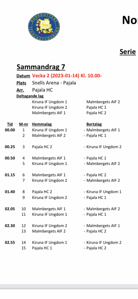 På lördag har U11 sammandrag i Pajala. Matcherna börjar kl. 10.00 och vi samlas på isladan kl. 9.00 Jag bifogar spelschema samt arbetsschema här. Hör av er om ni har några frågor. U13 6 jan 2023 9kommentarer
