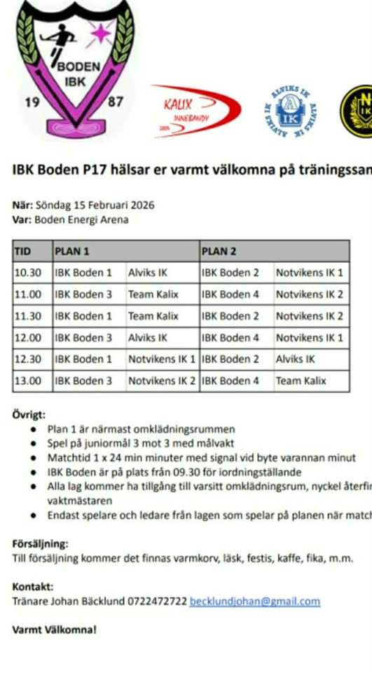 Klicka på bekräftelselänken i det mejl vi skickat dig för att börja ta emot uppdateringar från Team Kalix IBK P17.