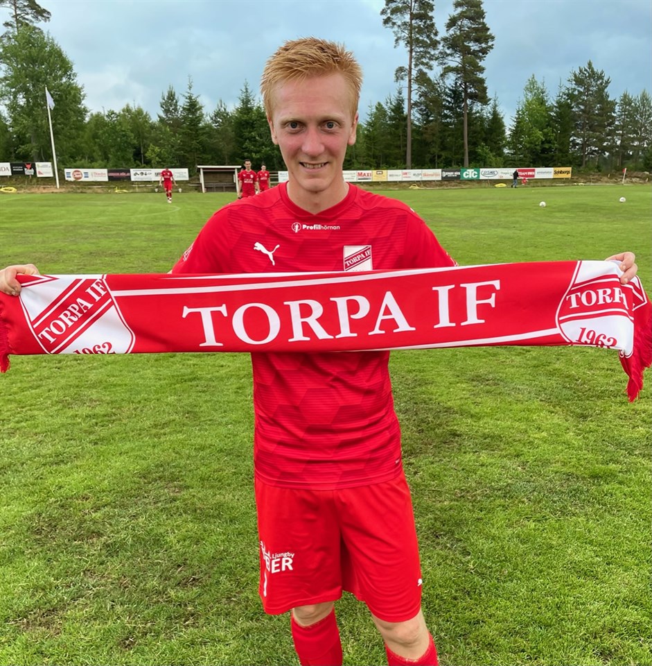 TIF-Vislanda 1-0 (0-0) 1-0 (82) Martin Hedvåg (ass Johan Brorsson) Matchens lirare TIF: Fredrik Sedin Matchens lirare Vislanda: Andreas Nilsson TIF:s krigare: Martin Hedvåg Domare: Axel Davidsson, Växjö Laget: Samuel Eliasson Fredrik Sedin, Axel Palm, Ludvig Karlsson Johan Palm, Murre Nazari Joel Lööf, Hannes Törnqvist, Sam Dada Martin Hedvåg, Johan Brorsson Avb: Julien Linda, Andreas Palm, Billy Svenske, Linus Strömgren, Johannes Eliasson,William Nilsbeck, Oskar Johansson (mv) Torpa avgör i slutet. Det satt långt inne men i 82:a minuten gjorde Martin Hedvåg matchens enda mål. Åter blir det en mål-snål hemmamatch där vi har svårt att få in bollen men när vi är så stabila bakåt, räcker det med ett framåt. Torpa började ganska bra första 10 min och var spelförande. Bästa chansen hade Martin i 7:e minuten men nicken smet strax utanför efter Joel Lööfs fina högerinlägg. Spelmässigt var följande 20-25 inte speciellt bra. Vi hade mycket felpass och bolltapp och Vislanda var det bättre laget. Dock var vi som vanligt denna vår starka i backlinjen och släppte inte till några chanser. I stället var det hemmalaget som kontrade i 23:e minuten och Hannes Törnqvist hade ett skott i ribban från nära håll. I övrigt hände inte mycket framför de båda målen och 0-0 i paus var ganska logiskt. En av våra sämre halvlekar men Vislanda stod upp bra och man spelade inte som ett lag som ligger på undre halvan. Att Torpa skulle öka tempot efter paus var ett måste och det såg bättre ut direkt efter start. Man fick i gång passningsspelet och kom fram oftare på kanterna. Martin hade en skaplig nick som gick över i 62:a minuten men bästa chansen hade Johan Brorsson på Martins frispelning i 68:e minuten. Målet var nästan övergivet men mv gjorde en grym räddning är han hann upp bollen efter Johans skott. Tiden gick och spelövertaget gav ingen utdelning. Torpa gjorde en del byten och fick in pigga ben. Vislanda blev allt tröttare och till sist kunde man inte stå emot. I en snabb omställning i 82:a minuten kom Johan B loss på vänstersidan, snett inåt bakåt passet var perfekt och vid första stolpen kom Martin farande och krutade in bollen. Ett bra anfall och ett snyggt mål. Torpa kunde ganska enkelt bevaka ledningen och spela av matchen. Ingen av våra bättre matcher men ändå starkt att vinna när det går lite tungt. Vislanda var bra och det visar hur jämn serien är. Samuel hade lite att göra i målet men var stabil, backlinjen vår bästa lagdel med Sedin som kvällens lirare. På mitten är Johan Palm vår motor. Framåt är Johan B och Martin pålitliga målskyttar och denna gång var det Martin som fick avgöra med ett vackert avslut. Nog borde vi få med någon i veckans lag vi fortfarande är obesegrade och skuggar Västboås i toppen. För Torpas del blir det ett långt uppehåll då vi inte har match förrän den 14/8 när Strömsnäsbruk gästar Skogsängen. Vi önskar alla en trevlig midsommar och en härlig semester. För alla fans finns nu en fin supporter halsduk för 175:-, se bilden från kvällens match. Ett måste när följer vårt kära lag!