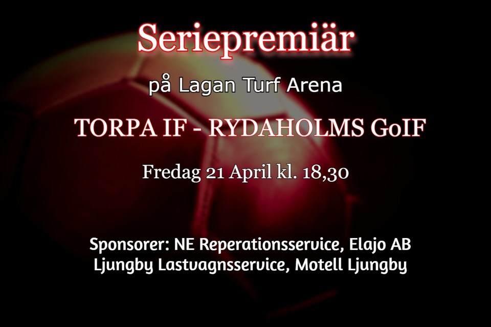 I morgon, fredag är det så dags för Torpa att begå sin seriepremiär. Det blir spel på Lagan Turf Arena när Rydaholm kommer på besök. Ett lag som vi mötte i Toyota cup för två veckor sedan. Då vann vi med klara 3-0 men matchen var jämnare än siffrorna visar och vi mötte tufft motstånd. Rydaholm är klart bättre i år och man kan mycket väl vara ett topp fem lag. Man har redan spelat en match och där tog man en stabil vinst med 3-1 mot VTIF-Grimslöv. Vår första match mot Älmhult United blev framflyttad och vi har inte spelat sedan i påsk då vi mötte Kulltorp. En mindre bra match från vår sida och vi förlorade med klara siffror. Nu är träningsmatcher och seriespel vitt skilda saker och det blir en annan skärpa när det är allvar. Vi har gjort en stark försäsong men nu börjar kampen om poängen och vi vill gärna vara med från start. Följande 16 man kommer till spel. 30. Samuel Eliasson 1. Oskar Johansson 5. Johan Palm 6. Fredrik Sedin 7. Johan Brorsson 9. Martin Hedvåg 11. Sam Dada 13. Axel Palm 14. Andreas Palm 15. Joel Lööf 16. Ludvig Karlsson 17. William Nilsbeck 19. Linus Strömgren 20. Hannes Törnqvist 21. Billy Svenske 22.Murtaza Nazari Matchstart 18,30 Vi hoppas på mycket folk då det är premiär och fint väder.