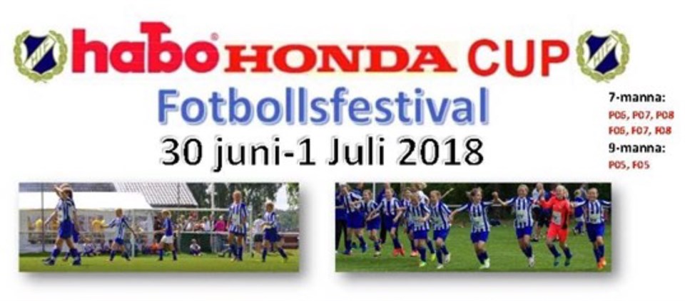Hej Alla, Vi har anmält två lag till Habo Honda Cup i sommar som går av stapeln 30/6-1/7. Ett F06-lag och ett F07-lag. För att veta hur vi ska planera lagen och att det finns tillräckligt med spelare så vill vi att ni kommenterar denna nyheten med om ni kan och vill vara med i Habo Honda Cup eller om ni inte kan. Kommentera även om ni inte kan så vi vet att alla har läst nyheten. Tack på förhand, Med vänlig hälsning, Tränarna F0607