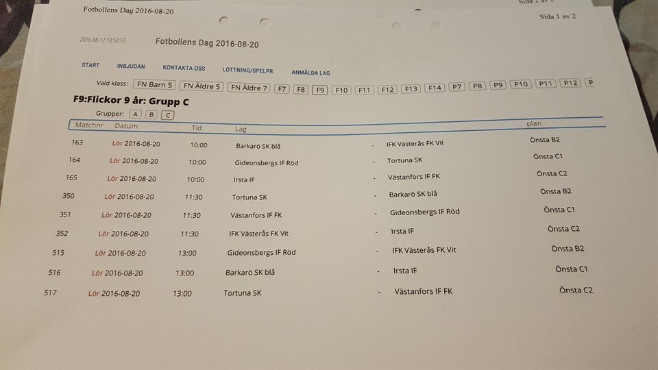 Nu har äntligen spelchemat för fotbollens dag kommit. Vi kommer att spela 3 matcher på Önsta enligt följande: 10.00 Gideonsbergs IF Röd - Tortuna SK Plan C1 11.30 Tortuna SK - Barkarö SK blå Plan B2 13.00 Tortuna SK - Västanfors IF FK Plan C2 Vi samlas på Önsta kl. 9.20 ombytta och klara. Håll tummarna för att det blir bra vädret! // Anna & Sara F-07/08 14 aug 2016 0kommentarer