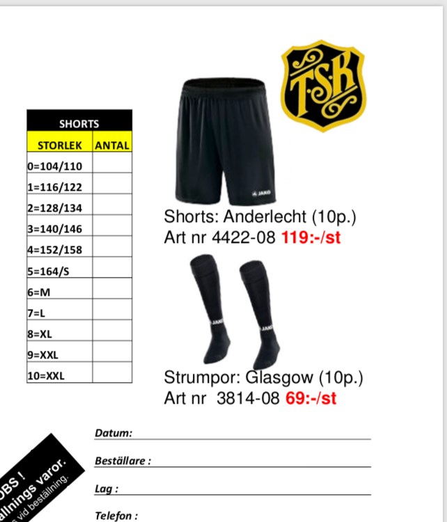Hej! Vi vill snarast beställa nya overaller då grabbarna inte verkat stanna i växten ännu... Lägger in bild på overall, matchshorts och strumpor med storlekstabeller. Behöver ni prova overall så åk till Intersport Erikslund (teamavdelningen). Vi får hjälpas åt att hitta sponsorer till dessa igen så vi får ner kostnaden för er. Se över era matchshorts, är de för små så ange storlek på nya. (Tror klubben står för shorts). Se bild med storlekar. Strumpor. Beställ om de gamla är för små. (Ev. Står klubben för strumpor annars betalar ni privat för strumpor) Gällande matchtröjor så kör vi vidare på befintligt ställ tillsvidare. Känslan är att storlekarna räcker till än så länge. Hojta till om den är för liten. Finns dock tröjor med samma nummer vilket vi behöver hålla isär för 7 mannamatcherna. Så i samband med att ni anger storlek på overall m,m så skriv också nummer och storlek på den matchtröja som eran grabb har så vi får överblick. Summering, ANGE I TRÅDEN: X Storlek overall X Storlek shorts (om de bef. Är för små) NYA FÅS OM GAMLA LÄMNAS IGEN. X Storlek strumpor och antal, KLUBBEN STÅR FÖR 1 PAR OM MAN VUXIT UR. X nummer och storlek på befintlig matchtröja X Ev, sponsorer för overallerna Väl mött /Tränarna P-08/09 29 apr 2018 17kommentarer