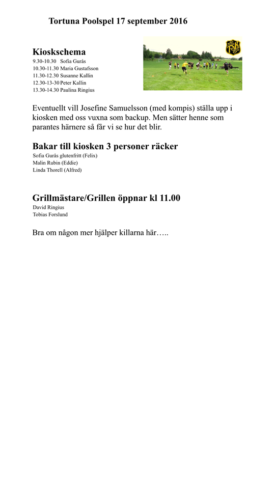 Hej alla, Vill tacka samtliga för en fantastisk dag. Vilket väder och vilket poolspel. Alla barnen var jätteduktiga på planen och vilken insats trots att skoljoggen var igår. Vill även tacka alla fantastiska föräldrar som bidrog med inköp, bak, kiosktjänst och grillmästarn för den goda maten. Kanske dags för kiosktävling framöver då många berömmer Tortuna kiosken. Roligt tycker vi 😊. Sist men inte minst ett stort TACK till våra tränare Henrik S, Henrik B, Daniel & Kristian som gör ett fantastiskt jobb med våra barn. Vilken utveckling på planen, händer saker hela tiden i spelet. Önskar alla en fortsatt trevlig helg! //Paulina