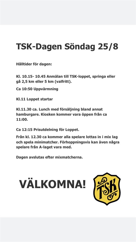 Program TSK dagen. P-08/09 13 aug 2019 0kommentarer