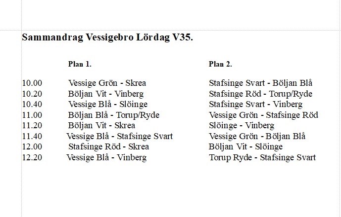 Vi spelar matcherna följande tider: 10:20, 11:00 och 12:20.
