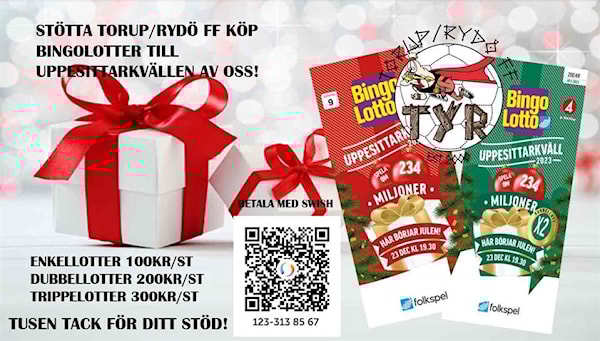 På fredag och lördag 29-30 november ska vårt lag sälja bingolotter till uppesittarkvällen på Coop i Torup.