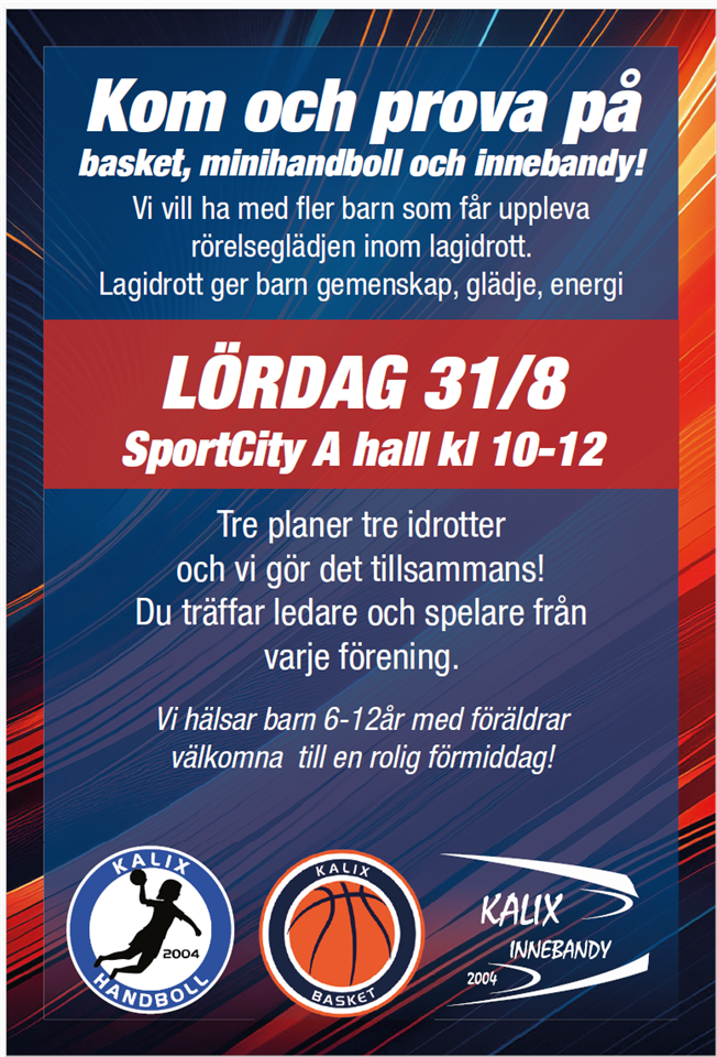 Team Kalix Innebandy, Kalix HK och Kalix Basket kör en gemensam prova på dag i SportCity lördag den 31/8 kl 10-12.