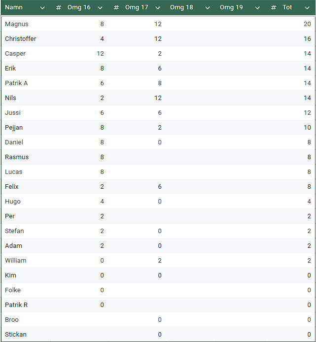 | 9. | (7) | Kinna IF A-lag Herrar |