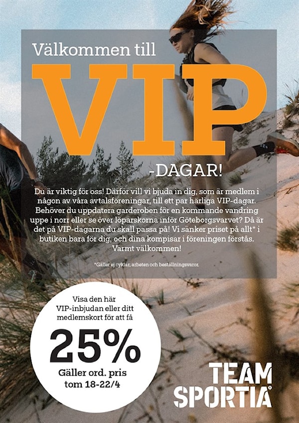Team Sportia har VIP dagar för samarbetsföreningar 18-22 April. 25% vid uppvisande av medlemskap.