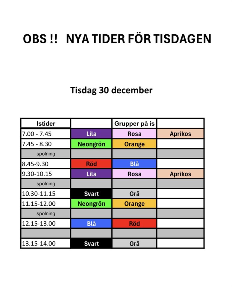 Schema för åkarna på mellandagslägret har några justeringar inför sista dagen. Se bild nedan!