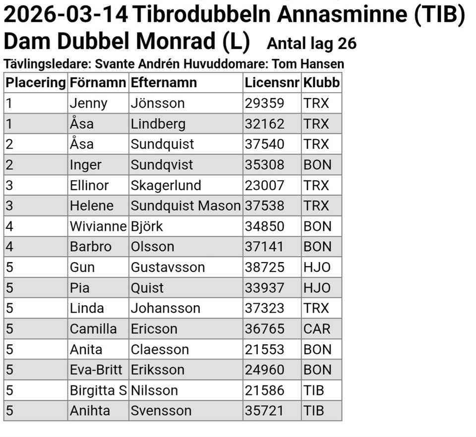 | 10. | (20) | IBK Lockerud Mariestad |