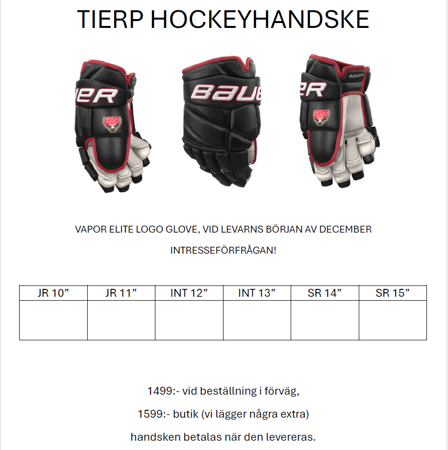 • Klubb hockeyhandskar, dags för beställning