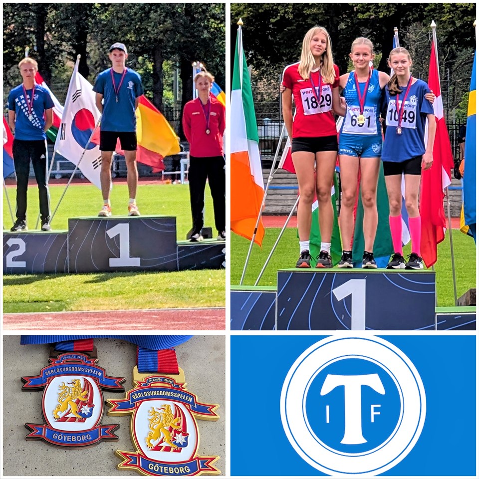 Helgen 27-29 juni avgjordes Världsungdomsspelen i Göteborg som är klassad som Europas största friidrottstävling för ungdomar. Totalt 3000 aktiva från 40 länder gjorde upp om medaljerna och Tierps IF representerades utav syskonen Vilma & Milo Enander. Under lördagen tävlade Vilma i 60m och tresteg. På F13 60m var det ca 120 deltagare & Vilma placerade sig på en fin 17:e plats i med tiden 8.66 sekunder, endast 2 hundradelar från en B-final. Senare samma dag var det dags för F13 tresteg där 50 tjejer från 6 länder skulle göra upp om medaljerna. Där visade Vilma att tresteg numera är hennes kanske starkaste gren & satte ett snyggt pers med 10.49m vilket tog henne upp till en bronsmedalj (!) , endast 1 cm före en dansk tjej. Vilmas Mittsvenska kompis Hilma Kabo från IFK Mora kom 1:a före 2:an Lilja Janus från Eslöv som hoppade 16 cm längre än Vilma. På söndagen var det dags för Milo Enander att hoppa tresteg i P16 där samtliga Nordens länder var representerade i startfältet. Milo vann denna tävling förra året på 13.08m, men även i år var startfältet fullt med bra hoppare så skulle bli en tuff fajt om medaljerna. Milo visade dock att han är att räkna med på stora tävlingar och lyckades repetera bedriften från förra året och hoppade hem ett guld även i år! Nytt pers 13.87m (mw+2.6), 1 cm före tvåan Vilde Lundell från Helsingborg och 73 cm före 3:an Oskar Hallenbo från Lerum. 3 svenskar på pallen! P16 hoppade tillsammans med åldersklassen över, P17, och Milo hoppade faktiskt längre än samtliga i den klassen också, riktigt imponerande & lovande inför kommande tävlingar. Samtliga resultat från Världsungdomsspelen: Resultat Världsungdomsspelen 2025 Stort grattis till bronsmedaljen Vilma och till guldmedaljen Milo önskar Tierps IF!