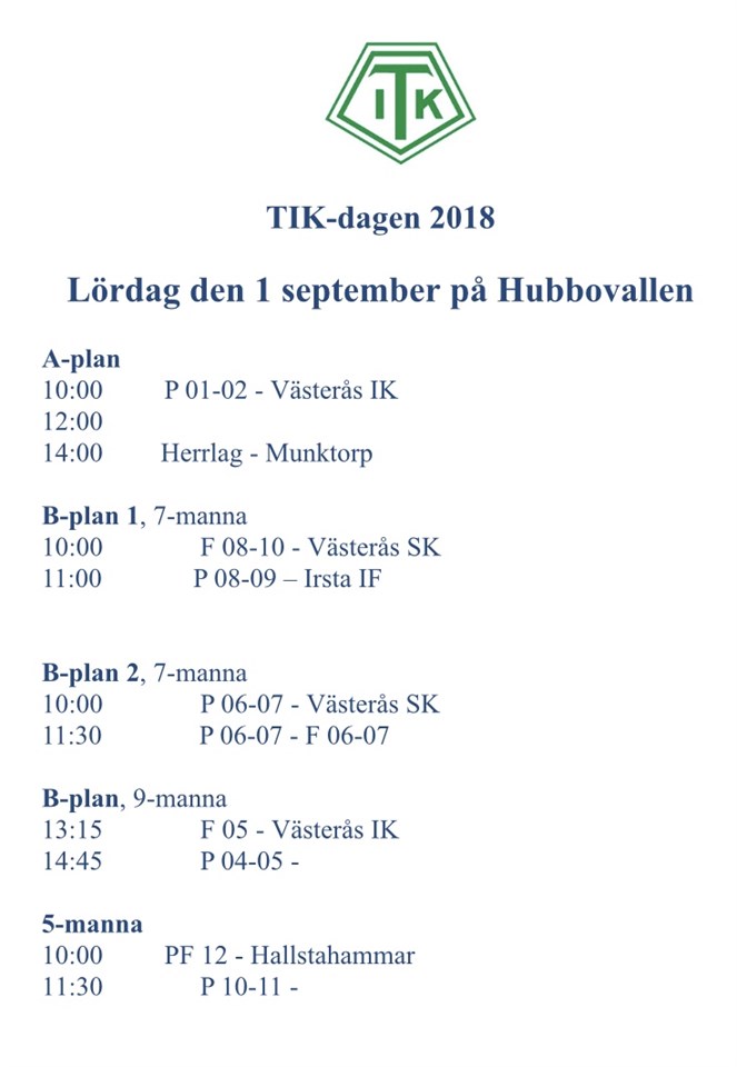 Dags för årets TIK-dag! Bifogar årets spelschema. Hoppas på en dag fylld med fotboll, glädje och gemenskap 😊⚽