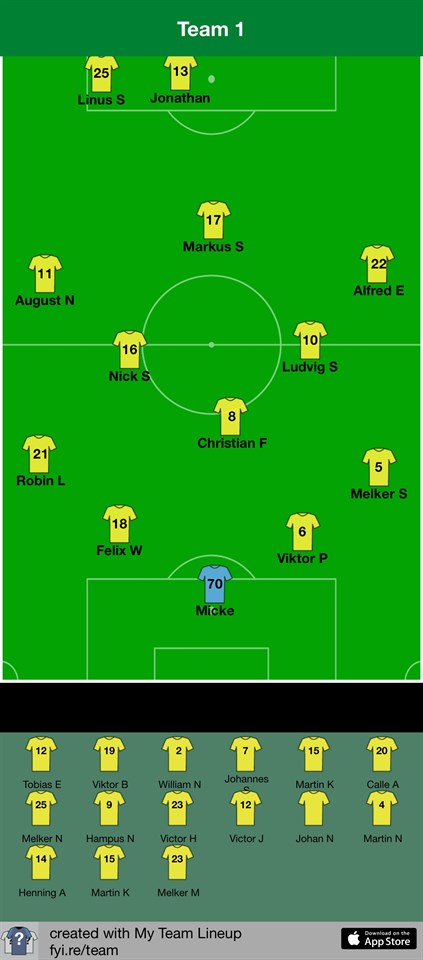 Ny match idag söndag borta mot Fårbo. Ser man till de senaste 2 matcherna har vi läckt som ett såll. 12 insläppta på 2 matcher är givetvis inte ok och självklart har vi inte fått med oss poäng heller när vi släpper in 5 resp 7 mål. Fokus kommer inte bli försvarsspel idag (vilket kanske vore det mest logiska) utan för min del kommer våra viktigaste ledord vara GLÄDJE, AVSLAPPNING och VÅGA. Sen får vi se hur långt det räcker idag. Truppen och startelvan ser ni ovan. Har ni inget för er idag så ta en tur till Fårbo och kolla hur det går för oss. Matchstart 14.00. Ha det bra.