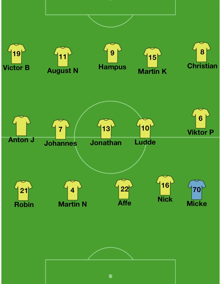 Klockan 14.00 idag tar vi emot IFK Västervik på konstgräset i Mönsterås. Västervik vann sin premiär med klara 3-0 mot Tjust. Det är alltid intressant att möta lag man inte känner till så mycket om och dagens motstånd är ett sådant. Med andra ord så kommer det bli en intressant drabbning i em. Vi kommer också från en skön premiärseger borta mot Södra Vi. Vi är skakiga första 10-15 då dem tar ledningen och skapar en hel del sen får vi tag i matchen på ett bra sätt och vänder på matchen till 2-1 i halvtid. I andra får vi kämpa hårt, framförallt sista 20 då de har mycket boll. Men vi håller undan till en fantastiskt skön seger. Den inställningen som vi visade upp i premiären måste finnas idag också. Funkar inte spelet helt och fullt går det alltid att slita till sig poäng. Vi vet att vi måste vara fokuserade och koncentrerade till 100 % för att lyckas med det vi vill på planen. Västervik kom på övre halvan förra säsongen och jag tror inte de är sämre i år så jag förväntar mig ett tufft motstånd. Vi hoppas kunna bjuda på en bra match där vi vågar och vill spela på det sätt som vi kommit överens om. Truppen till dagens match ser ni ovan. Följande spelare är ej uttagningsbara. Markus S -skadad Martin N - sjuk Felix W - bortrest Victor B - bortrest Christian F - bortrest William N - skadad Välkomna till konstgräset i Mönsterås kl 14.00 då matchen blåses igång. Seniorlag Herrar 23 apr 2022 1kommentar