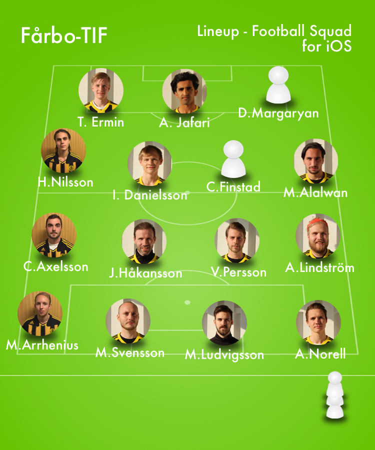 Söndagens heta drabbning slutade med en fantastiskt skön 3 poängare till gulsvart. En jämn och härlig kamp som vi till slut vinner rättvist med 2-0. Vi börjar matchen riktigt bra. Hittar ytor på deras kanter och kommer runt flera gånger de första 5-10 min. Har en del bra lägen att ta ledningen men får ingen utdelning. Spelet jämnar ut sig lite. Vi vet att de tycker om att slå långt men vi ligger bra med vår backlinje och vinner ofta förstakampen. De får periodvis lite tryck på oss i första och det kommer sig av att de får tag i andrabollarna och matar längre igen. Vi turas om att ha initiativet i första halvlek. Vi har chanser att göra mål och de är giftiga på sina fasta men 0-0 är resultatet i paus. Inför andra vill vi korrigera lite så att vi får tag i andrabollarna som vi tar undan när de lyfter långt. Får vi tag i dem är mycket vunnet och vi känner att vi gjort en ok första halva men att det finns mer att ta av och framförallt att det här är en match som vi bara SKA vinna. Längesen jag känt en sån beslutsamhet i gänget i halvtid och vilken härlig andra halvlek det blir. Vi gör en riktigt bra andra halva. Det vi pratade om i halvtid lyckas vi väldigt bra med. De fortsätter lyfta längre för skarv men vi ligger helt rätt och får vi inte tag i första så tar vi andrabollarna. Framåt öppnar det upp sig lite mer. Vi är nära att rinna igenom men det är det sista avgörande momentet som inte vill sig i början av andra. 1-0 kommer efter ca 60 min av matchen. Christian når högst på en fin hörna av Simon och skarvar in 1-0. Matchen är het på många sätt både i luften och på plan. Båda lagen vill mycket och det är en härlig kamp med mycket känslor. Vi fortsätter att spela ett bra försvarsspel och släpper inte igenom mycket. Offensivt har vi en del möjligheter men 1-0 står sig när klockan tickar upp mot 90. De försöker givetvis trycka på framåt men vi gör ett ruskigt bra jobb och vi gör också 2-0 genom Mackan i 90:e och kan slappna av de sista minuterna. 2-0 målet är riktigt fint att skåda. August har boll på vä-kanten utanför straffområdet. Får på sig 2 gubbar, släpper bollen mellan dem till en inlöpande Joel i straffområdet. Han tittar upp och spelar in till Mackan som tar emot, lägger över den på vänstran och dunkar upp den i första klykan. Vilket mål och vilken lättnad!! En jämn, varm och härlig match med en finfin prestation från oss och finfint resultat. Nu är vi i allra högsta grad med i racet om kvalplatsen och jag ser verkligen fram emot höstens matcher. Stort plus till hela laget för deras insats och stort plus till er som tog er ner till Tillingevallen och hejade på oss. Tack för det! Nu väntar några veckors ledighet innan vi börjar träna igen. Nästa match är fredag 2 augusti hemma mot Lojal. Ha det bra!