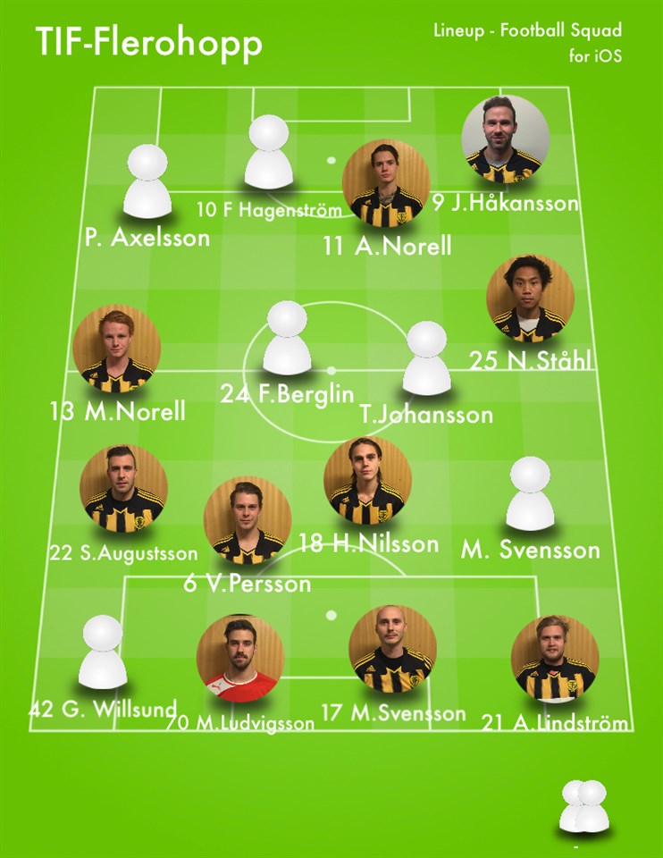 Gårdagens match mot Fliseryd slutade med en klar 6-1 seger. Återigen en första halvlek som är "sådär", följt av en klart godkänd andra halvlek gjorde att det blev en ganska lugn resa mot 3 poäng till slut. Truppen idag bestod av 5 spelare (mig själv inräknad) som gjorde sin första match för säsongen. För Tim Johansson var det premiär i den gul/svarta TIF tröjan(vi hoppas på fler framträdanden där), Pontus Axelsson har varit med inomhus och visat upp sig i gul/svart tidigare men i går var det debut på full plan och för Lasse Norell, född 03, var det första matchen någonsin i A-laget. Alla 3 gjorde klart godkända insatser och hamnade även i målprotokollet. I och med att det var en hel del spelare borta jämfört med de senaste matcherna var det flera spelare som fick agera på nya positioner. Första 20 är inte bra från vår sida. Vi slarvar i passningsspelet, håller i boll lite för länge, det går lite för sakta innan beslut tas och vi gör det ganska svårt för oss själva. Tycker ändå att vi har god koll på Fliseryd när de kommer till anfall. Vi skapar en del utan att komma till de riktigt heta lägena. Efter dryga 20 min tar Fliseryd ledningen. De lyfter över vår backlijen och kommer loss på vår hö-kant, in i straffområdet och avslut i bortre och tyvärr 0-1. Det var inte alls som vi hade tänkt oss men det blev en väckarklocka för oss. Sista 20 lyfter vi oss rejält. 5 min efter deras ledningsmål kvitterar vi. Filip får ett uppspel centralt vid mittplan, vänder upp och sätter fart framåt. Pontus tar en löpning på djupet, finfint pass, friläge och 1-1. Härlig omställning och behärskat avslut! 2-1 kommer två minuter senare. Säsongdebuterande Martin Arrhenius har boll på offensiv halva. Lägger ut den till NIck på vänsterkanten, startar löpning in i straffområdet, inspelet kommer från Nick och Martin styr in 2-1 målet i målvaktens bortre hörn. Skönt och vi har vänt matchen. 2-1 står sig i halvtid och inför andra gör vi en organisationsförändring som varit bestämt på förhand. Andra halvlek är vår från början till slut. Micke har återigen en mycket lugn halvlek och behöver inte göra något ingripande över huvudtaget. Ett och annat hemåtpass blev det , inte mycket mer. 3-1 kommer efter ett par minuter av andra. Vi kommer runt på högerkanten och slår ett inlägg som Fliseryd får bort, utanför straffområdet står dock Tim som drar till på halvvolley och den sitter fint vid målvaktens högra stolpe. I 52 minuten ökar vi på till 4-1. Fint anfall på högerkanten där Melker vinner sin duell mot backen. Löper sig fri och in i straffområdet, istället för att avsluta själv blir det ett sidledspass som Filip enkelt petar in i mer eller mindre tomt mål. Häligt anfall från början till slut. Runt minut 60 får vi en frispark på vänsterkanten, lång ut mot sidlinjen ett gäng meter ovanför straffområdet. Anton stegar dit och måttar ett hårt högt inlägg som ser ut att gå för högt och långt. Men Anton har ju ett internationellt gångbart tillslag som gör att bollen får ett härligt dyk och seglar in över målvaktens händer i bortre burgaveln och vi har 5-1. Matchen är klar sedan länge och vi fortsätter skapa chanser. Lasse Norell kände på A-lagsfotboll sista 10 min av första halvlek. När det är en kvart kvar kommer han igen. Redan efter ett par minuter på plan får löper han fint på bortre, får ett inspel som tyvärr går i ribban och över. När det är några minuter kvar av matchen blir Mackan fälld i straffområdet. Solklar straff som grabbarna överlåter till Lasse att förvalta. Ingen tvekan för Lasse att ta den. Han stegar fram och sätter den hårt och bestämt mitt i mål utan chans för mv. Roligt att Lasse vågar och vill ta för sig i sin A-lagsdebut, bådar gott framöver. Att han sen inte tvekar att ta straffen och förvaltar den på bästa sätt är extra kul att se. Vi gör en godkänd andra halvlek där vi kunde gjort fler mål än de vi gjorde. Finns som alltid saker som är bra och saker som vi behöver utveckla. Ny träningsvecka och sista gruppspelsmatchen mot Flerohopp hemma på konstgräset i Mönsterås på lördag kl 10.00 är det som gäller för oss. Ha det bra!