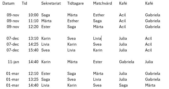 Jag har nu satt ihop ett schema för våra matcher i Häggvall.