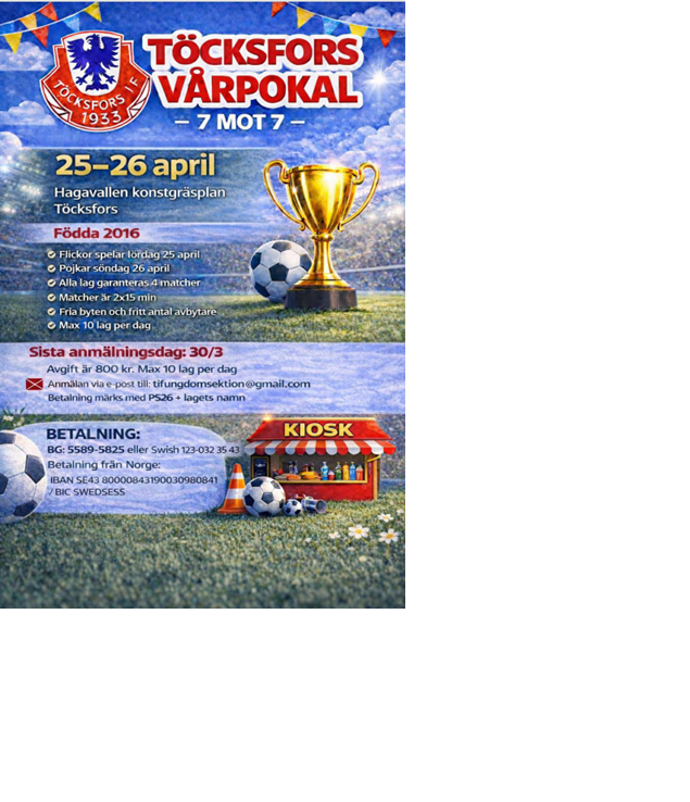 Klicka på bekräftelselänken i det mejl vi skickat dig för att börja ta emot uppdateringar från Töcksfors IF.