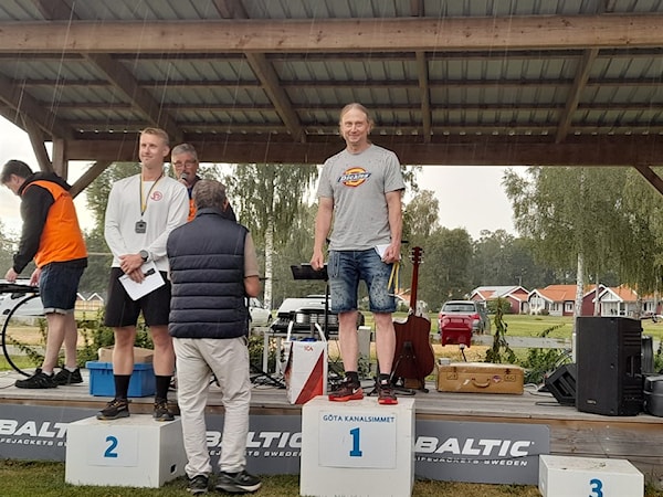 Klaes Persson, som simmar i TSF, segrade i klassen 1550 meter på Göta kanalsimmet. På andra plats kom Anton Björck-Teuscher i simklubben SO2. På tredje plats kom Max Larsson i Mariestads simsällskap (ej med vid bildtillfället).