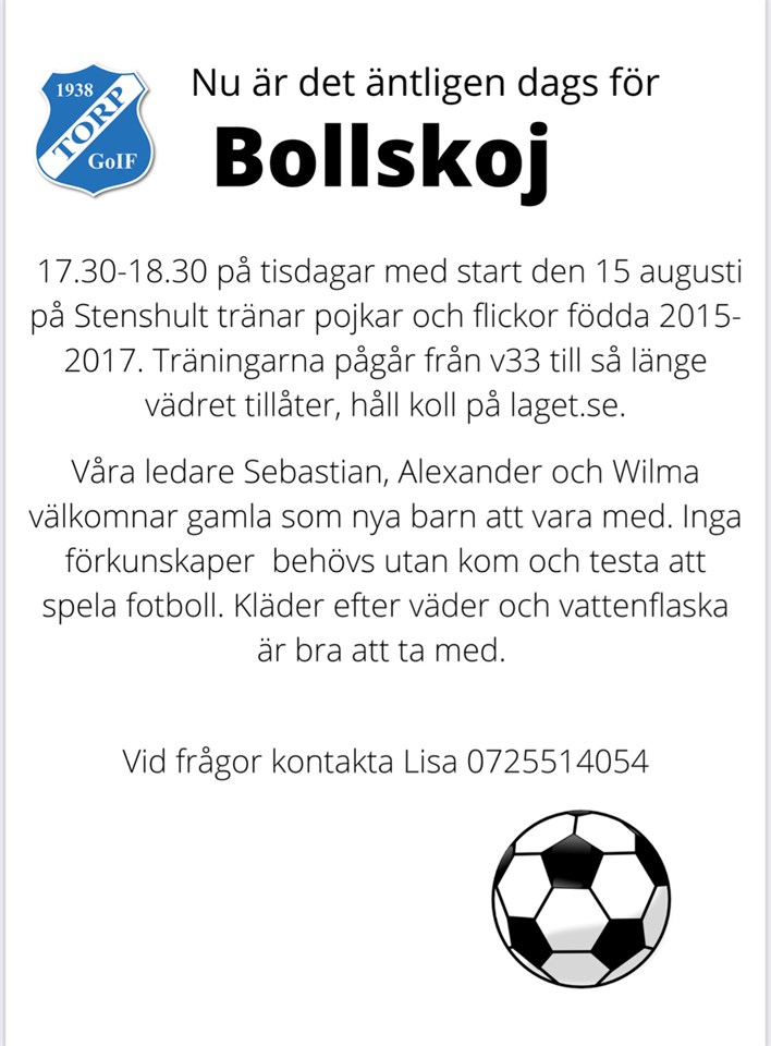 Nu börjar höstens säsong av Bollskoj. Start tisdag 15 augusti kl 17:30 på Stenshult Bollskoj 12 aug 2023 0kommentarer