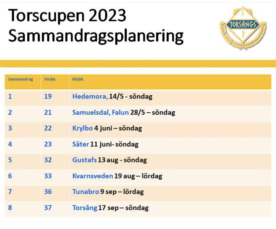 Hej hej I bifogad bild sen ni datum för Torscupen 2023. Vi vill reservera oss för eventuellt förändringar Vi kommer att sända ut kallelser för varje match när sammandraget närmar sig. Med vänlig hälsningar Ledarna Jenny och Josefin F 11 ( 2014 ) 24 apr 2023 0kommentarer