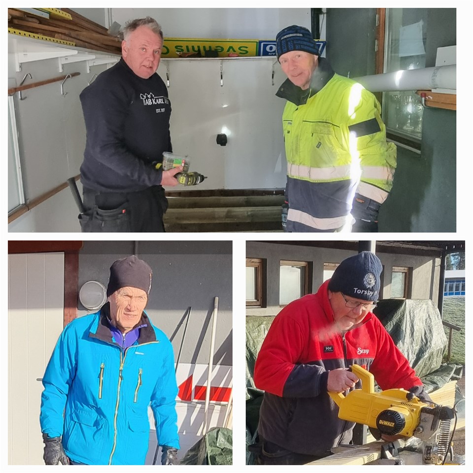 Igår hjälpte veteranerna Jan Olsson, Lars-Åke Adolfsson, Bengt-Åke Johansson och Lars-Inge (Ling) Karlsson oss med att fixa golv i förrådet. Stort tack, det blev verkligen toppen bra.