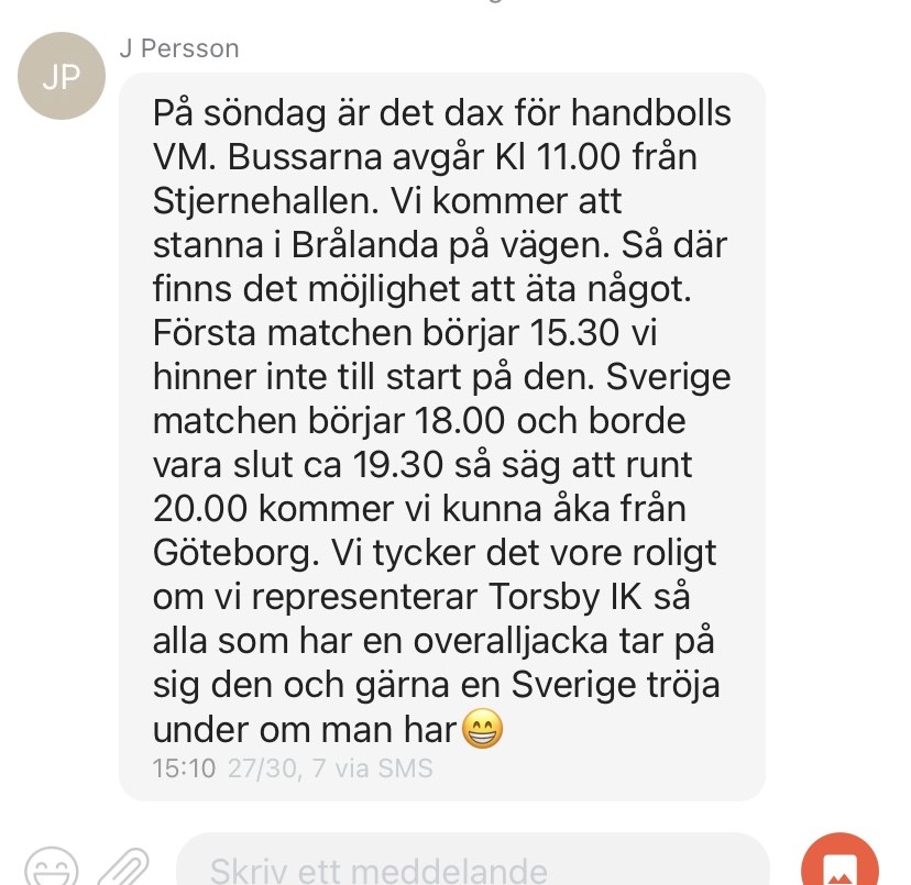 Hej, bortamatcherna som skulle genomförts till helgen är flyttade till 9/12. Det är totalt 3 matcher; torsby grå mot brukspöjkera, torsby svart mot brukspöjkera, samt torsby grå mot torsby svart. Tiderna är följande: 10:00 11:30 13:00 Vi behöver få info senast tisdag 5/12 kl. 18:00 vilka som kan delta från respektive lag. Samtliga tränare i lag svart är bortresta aktuell dag, så tränare för lag grå kommer ta ansvar för ledarskapet denna dag, tillsammans med er som föräldrar. Meddela i denna tråd om vilka spelare som kommer delta aktuellt datum, samt om det är någon av er föräldrar som kan hjälpa till på bänken under aktuella matcher. Mvh tränarna F11 F13 (2012) 30 nov 2023 35kommentarer