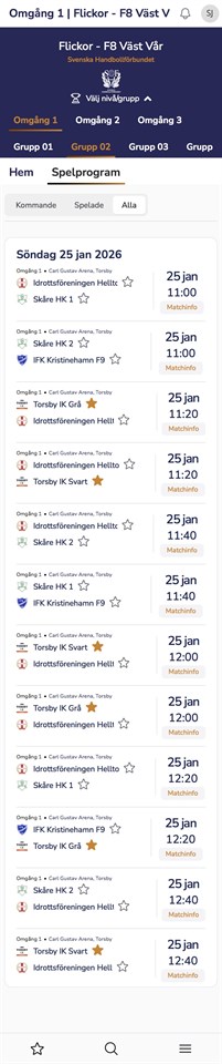 | IFK Kristinehamn Handboll (hemma) | 15 feb, 10:30 |