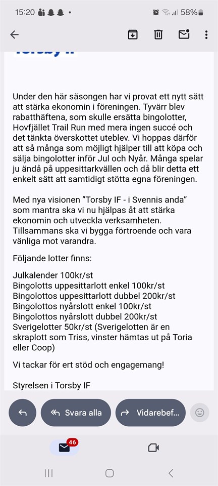 Klicka på bekräftelselänken i det mejl vi skickat dig för att börja ta emot uppdateringar från Torsby IF P-2010.