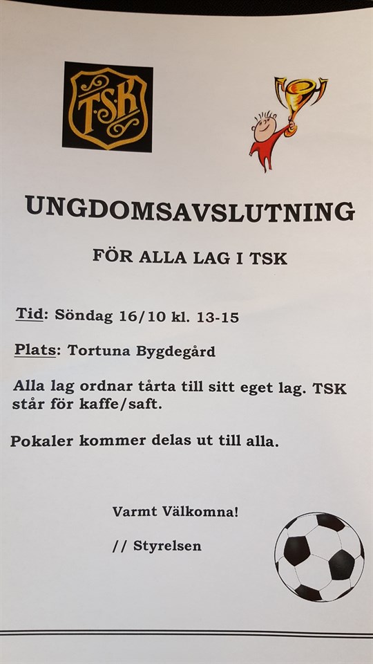 Snart dags för ungdomsavslutning! Tortuna SK 19 sep 2016 0kommentarer