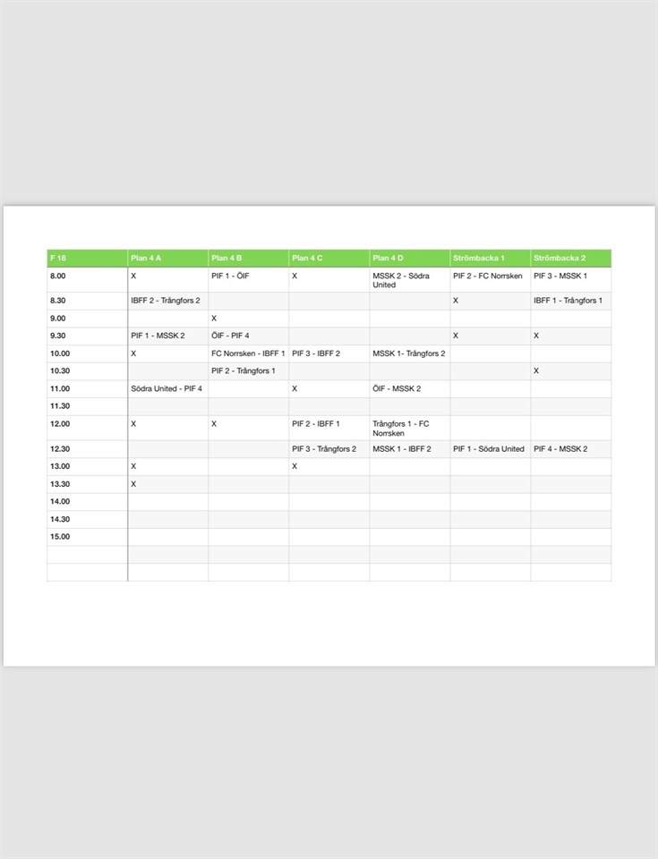 -På morgonen träffas vi 07:50 vid planerna man spelar på (40 min innan första matchen).