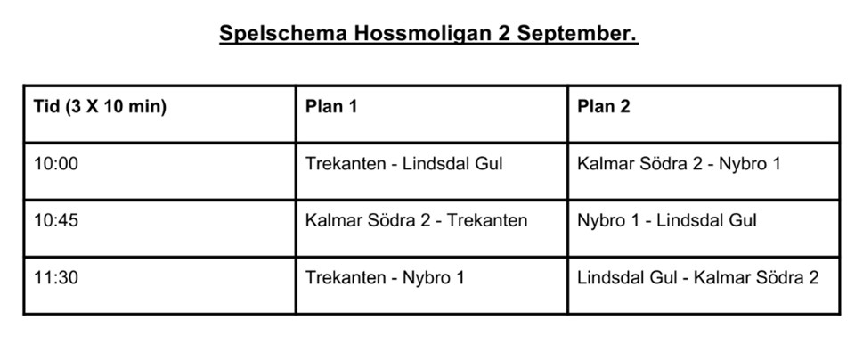 Hej! Dags för omgång 4 i Hossmoligan. Nu på lördag 2/9 hemma på Åvallen 😃 Matchstart kl. 10:00 Samling kl. 09:15 Kiosken kommer vara öppen så behöver 2 st som kan stå där 😃 Kallelsen kommer inom kort. Mvh PF15 30 aug 2023 3kommentarer