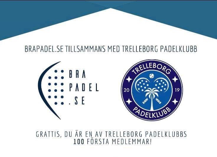 Tillsammans med en av våra samarbetspartners, Bra Padel kan vi presentera ett riktigt fint erbjudande till våra 100 första medlemmar*. Skicka ett mail till: medlem@trelleborgpadel.se för att bli medlem. Är du redan medlem kommer du självfallet få ta del av erbjudandet. Hela erbjudandet kommer avslöjas efter betald medlemsavgift. Och detta är bara början - det kommer fler förmåner, så se till att bli medlem idag! *Erbjudandet gäller till de 100 första som skickar in medlemsansökningsblanketten, och som därefter betalar medlemsavgift inom utsatt tid.