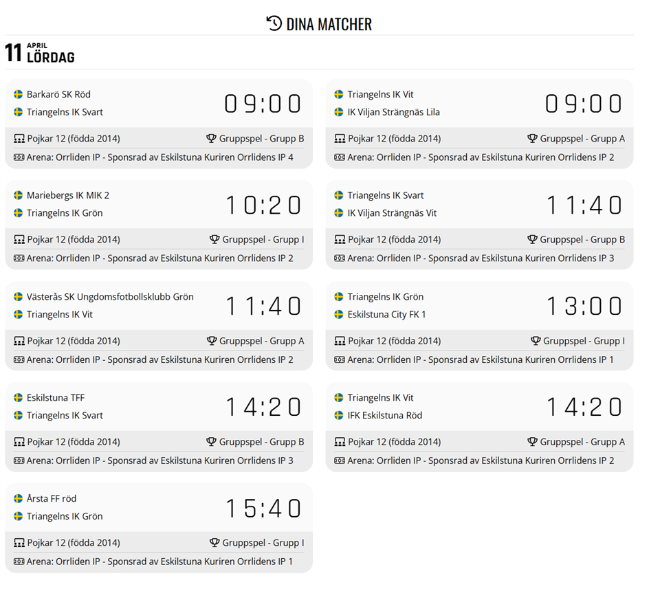 | Träningsmatch Torshälla | 19 apr, 12:30 |