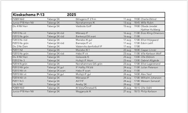 Fyll i din e-postadress för gratis uppdateringar om Tabergs SK P-13
