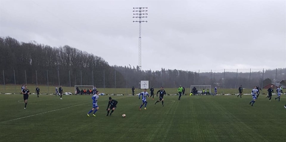 Ikväll körde vi årets första utomhusträning på ett kallt men fint Lassalyckan, som extra krydda hade vi även besök av Emir Bajrami som höll i träningen. Emir som spelade några matcher med oss under 2019 är nu assisterande tränare i IF Elfsborg. Emir pratade om grunder i försvarsspelet och talade om den trygghet i spelet man skall känna, killarna lyssnade med stora öron på vad han gav för tips i olika matchsituationer under träningens gång. Första matchen är nu på söndag borta mot Örby, då kommer första testet om killarna tagit till sig den ovärderliga kunskap Emir delade med sig av. På bilden ser vi Emir instruera Gabbe under träningen!
