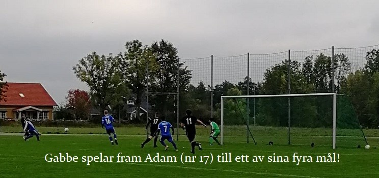 Söndagsmatch i Borgunda, en fin plats där vi inte tidigare varit och spelat boll. Förutsättningarna kunde varit bättre då vi hade Sebbe, David och Henrik och Albin avstängda efter att det samlat på sig tre gula kort. Men som man brukar säga så är det bara för det som kommer in att visa att det också kan lira boll och det gjorde det verkligen. Matchen börjar annars lite tveksamt för oss, hemmalaget var lite mer på tå och orade oss lite till en början. 1-0 kom också på en frispark efter 12 minuter! Men det kändes ändå att vi kunde hota och vi hade ett par halvchanser som vi kunde förvaltat lite bättre, men även Borgunda hotade vårt mål även om det kändes att vi tog över lite efterhand under första halvlek. 1-1 skulle dock komma i minut 42, på Gabbes hörna så höll sig Adam T framme och stötte in bollen. Alltså 1-1 i halvlek, men det skulle inte stå sig så länge. Nu började Adam Tingström show! Mål i minut 47, 51 och 60! Assisterad av Gabriel Frilander till alla tre, 5-1 kom också i minut 61 av Lucas Olausson framspelad så klart av Gabriel Frilander. I och med det så spelade Gabbe fram till fyra baljor, själv tyckte han att han spelade fram till alla målen. Nu trodde ju så klart alla runt planen( 11 stycken från hemmalaget) och våra tillresta 15 st att det var klart. Men det skulle ändå bli lite spänning innan pipgeneralen blåste för sista gången idag. Hemmalaget lyckades med att göra två mål till och kämpade på hela vägen in, kanske trodde våra spelare också att det var klart liiite för tidigt? Men segern var klart rättvis, vi var det bättre laget sett över 95 minuter. Extra plus skall våra två pigga forwards ha, Adam för sina fyra mål och Gabbe gör sin klart bästa match för i år. På mitten spelade Lugi lika bra som han gjort hela hösten och styrde och ställde med sitt lugn, det killar som fick chansen tog den och spelade mycket bra. Men matchens stjärna får ändå Adam Tingström bli, fyra mål säger väl allt och särskilt hans 2-1 mål där han på egenhand vänder bort försvaret och böjer in bollen i målvaktens vänstra hörn. Tyvärr så vann Valtorp sin match och det gör att chansen till kval mot fyran inte längre finns, men vi skall göra allt för att vinna mot Herrljunga på söndag och om vi får med oss ett resultat så blir vi trea vilket är oerhört bra!