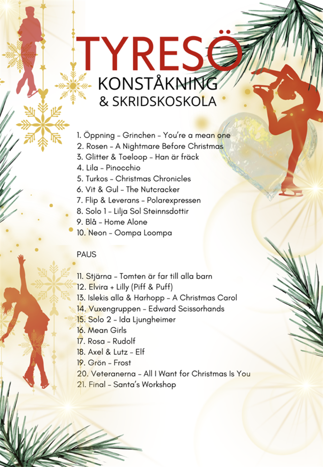 Här ser ni startordningen på julshowen söndagen den 14 december 2025 kl. 12–14. 🎄