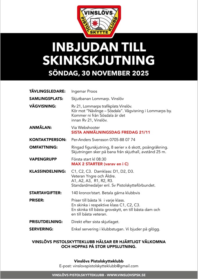 Fyll i din e-postadress för gratis uppdateringar om Tyringe Pistolklubb